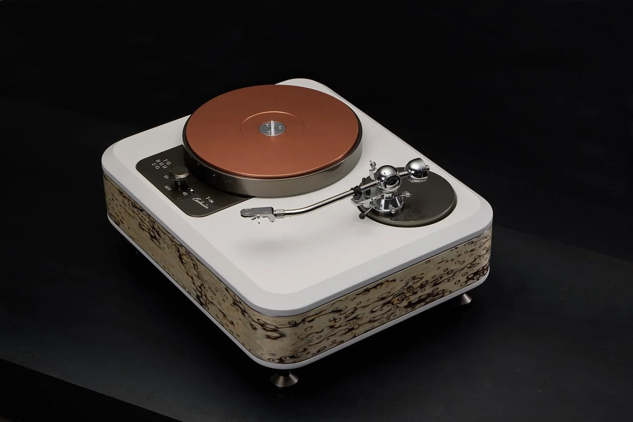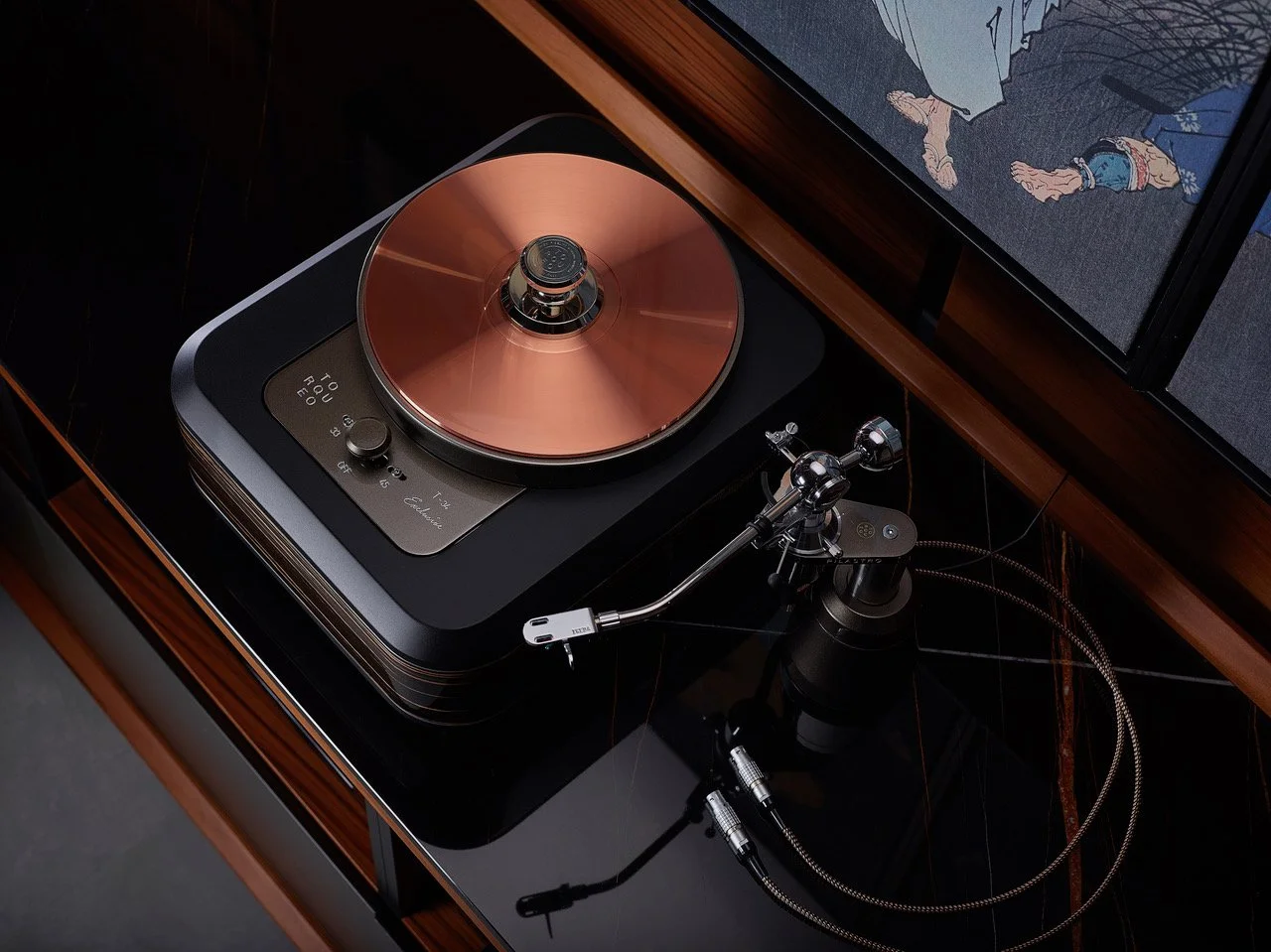 Le résultat est une platine vinyle unique à entrainement par double galet, un galet par vitesse pour 33,33 et 45 t/min. Un système mécanique de haute précision utilisant les matériaux les plus performants équipe un chassis capable d'exalter les qualités de cet entrainement atypique et accueillir les meilleurs bras de lecture et cellules du monde, en l’occurence Ikeda.