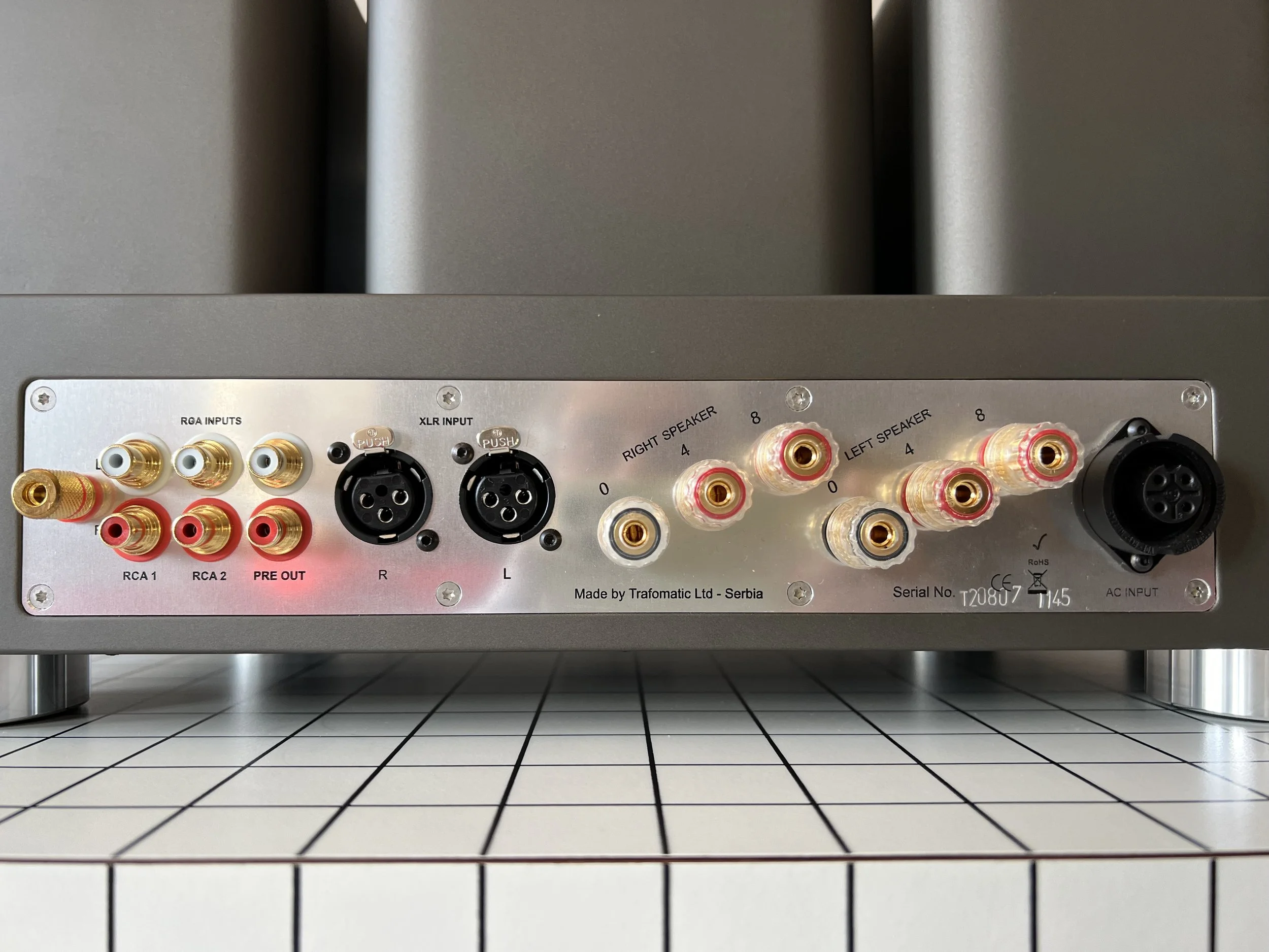 Well designed power supply made as separate unit utilizes 800VA toroidal transformer and C-L-C filter separated for each channel. Output transformers are based on a Double-C core configuration and Solen fast capacitors are used throughout. Adding well thought-out concept to the mix results in a recognizable high quality sound of our amplifiers.                                                                                   The new modern styling of Trafomatic Audio amplifiers has been extended to this model as well, which makes a perfect sonic and visual fit with your room.